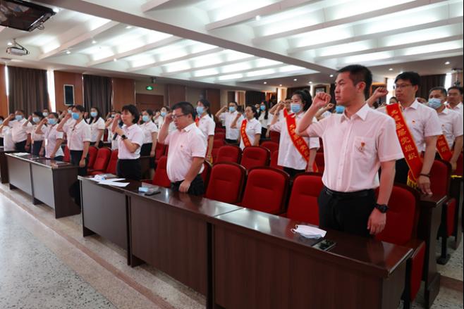 大会在雄壮的国歌声中拉开了序幕。党委委员、组织部长王丹带领全体党员宣誓,重温入党誓词。