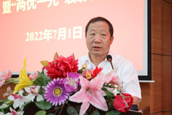 为庆祝中国共产党成立101周年,迎接党的二十大胜利召开,7月1日下午,学校在图书馆601报告厅召开庆祝建党101周年暨“两优一先”表彰大会,一批在学校各项事业建设中涌现出的先进基层党组织、优秀党务工作者和优秀共产党员受到表彰奖励。学校党委书记郭伟东出席会议并讲话,会议由院长、党委副书记曹然彬主持,校领导、党委委员、各党总支(直属党支部)、基层党支部的书记和委员,师生党员代表,受表彰的先进集体代表和优秀个人现场参会,其他党员线上参会。