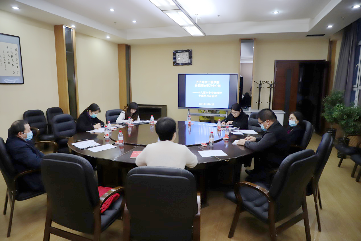 12月10日,学校党委理论学习中心组就十九届六中全会精神进行专题学习与研讨,党委书记张长娟主持,党委理论学习中心组成员参加。
