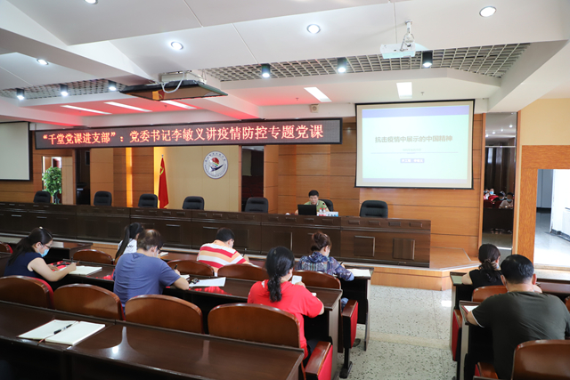 6月29日下午,校党委书记李敏义以《抗击疫情中展示的中国精神》为题,在图书馆601报告厅为机关第一党支部、机关第二党支部和思政教学部党支部全体党员讲专题党课。机关第一党支部书记郭伟伟主持党课学习。
