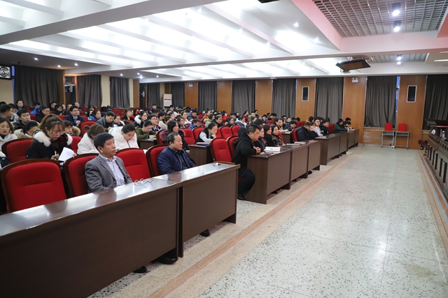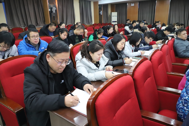 按照省委、市委关于做好第二批主题教育评估工作的部署和要求,12月30日下午,市委主题教育第十三巡回指导组成员赵士成、贾伟来到我校开展主题教育随机测评工作。此项工作在图书馆601报告厅进行,参加测评会的有校领导、中层干部、“两代表一委员”、教学科研骨干、师生党员和职工代表近两百人。测评会由赵士成主持。