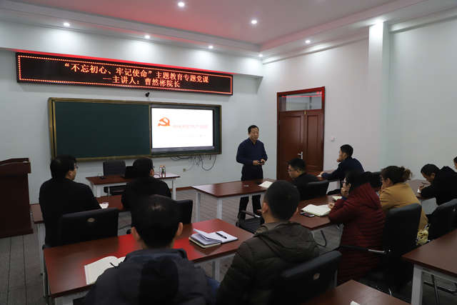 根据学院党委“不记初心、牢记使命”主题教育工作安排,10月30日下午,学院党委委员、院长曹然彬以《做优秀的共产党员》为题,为机关第三党支部全体党员和信息工程系全体党员、干部及专业长上专题党课。