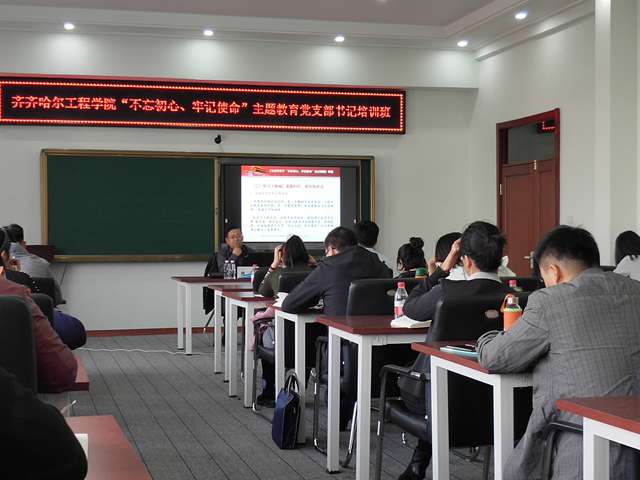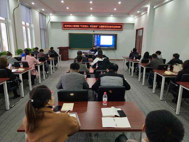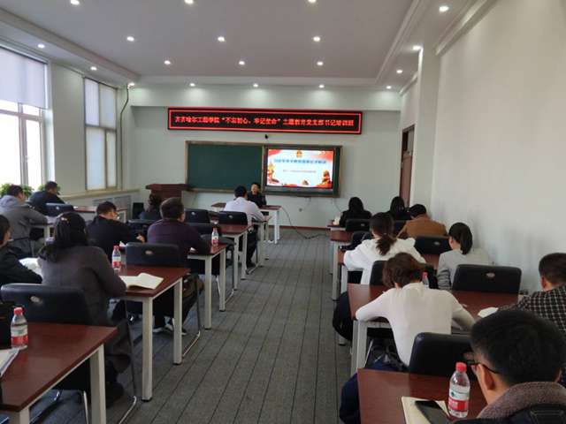 按照省委教育工委《关于在第二批“不忘初心、牢记使命”主题教育中开展高校党支部书记轮训工作方案的通知》和《齐齐哈尔工程学院“不忘初心、牢记使命”主题教育实施方案》的相关要求,学院党委于10月19日-21日举办“不忘初心、牢记使命”主题教育党支部书记培训班,35位基层党支部书记(含建华医院党支部书记)参加培训。