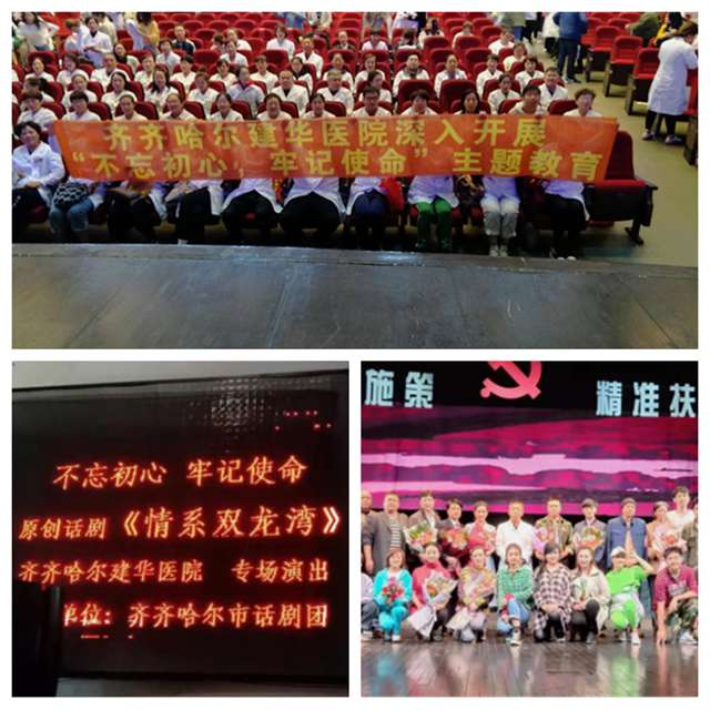 9月20日,建华医院党委组织全体党员领导干部观看话剧《情系双龙湾》,进行生动的“不忘初心、牢记使命”主题教育。剧中展现了新时代党员干部以实际行动践行初心使命的典型事例,大家被扶贫干部无私奉献、敢于担当的精神所感染,进一步增强了爱党、爱国、献身医疗事业的真挚情感,决心通过主题教育努力实现理论学习有收获、思想政治受洗礼、干事创业敢担当、为民服务解难题、清正廉洁作表率,继续为医院发展添砖加瓦,为鹤城百姓健康贡献力量,向新中国70华诞献礼!