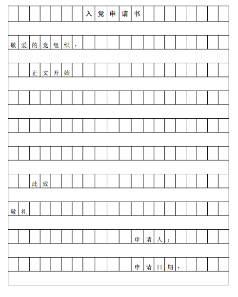 要求入党的人必须自愿向党组织正式提出书面申请,这是加入党组织的必要手续。入党申请书一般按以下格式和内容书写: