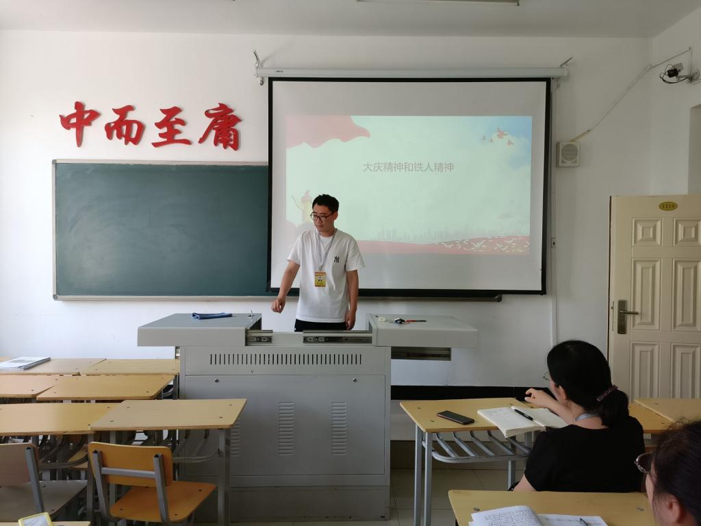 会上,姜宏伟分享他大学时作为学校宣讲员,曾多次在大庆铁人纪念馆进行宣讲,这对他的人生观、价值观影响非常大;随后,为教师们讲述铁人王进喜的英雄事迹。他说:“我们要将铁人精神作为平时工作的行动指南,学习铁人王进喜无私奉献、鞠躬尽瘁的精神,工作中知难而上,迎难而进,积极应对各种挑战,立足工作岗位,扎实做好本职工作,完成学校和系部安排的各项工作任务,推动本部门工作更好更快地发展。”