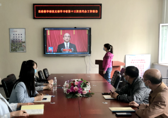 5月24日下午,思政教学部党支部全体党员在三号教学区1211室开展深入学习省第十三次党代会工作报告精神。全体党员会上交流学习心得,分享学习体会。