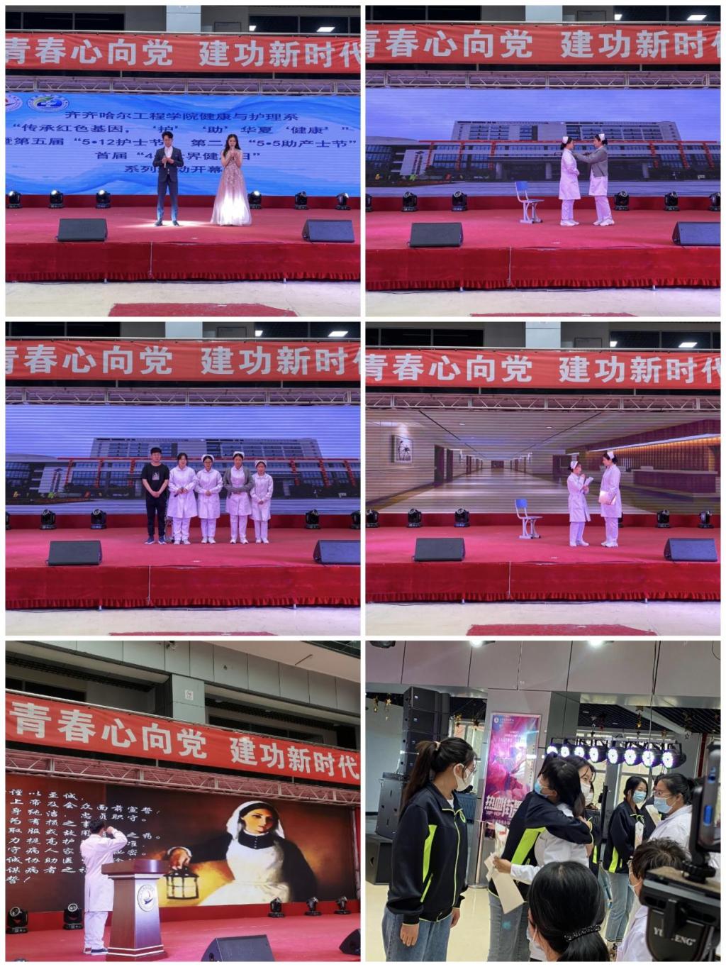 开幕式在护理系学生表演的“洗手舞”中奏响序曲。同学们身穿护士服,用舞姿展现了无菌操作七步洗手法。