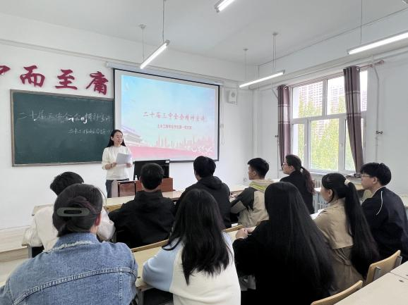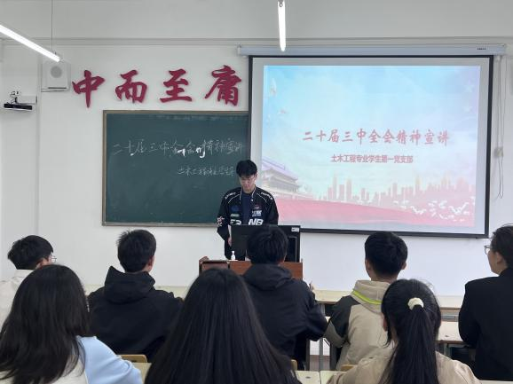 为深入学习党的二十届三中全会精神,让党员对此会议有更深刻的理解,土木工程专业学生第一党支部于9月22日组织全体党员在2教2511,深入学习党的二十届三中全会的核心内容、重大意义和战略部署,让党员们对会议精神有了更深刻的感悟。此次宣讲由土木工程专业学生第一党支部书记王雪主持。