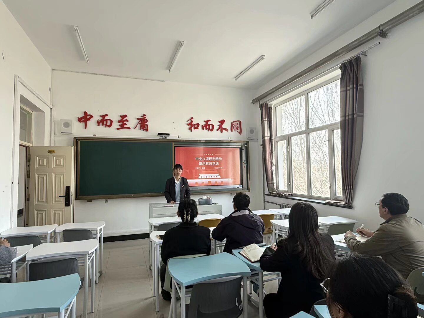 4月6日上午,计算机与电子专业教师党支部召开党员大会,集中聆听深入贯彻中央八项规定精神学习教育专题党课。党支部宣传委员赵芳主讲,全体党员参加。